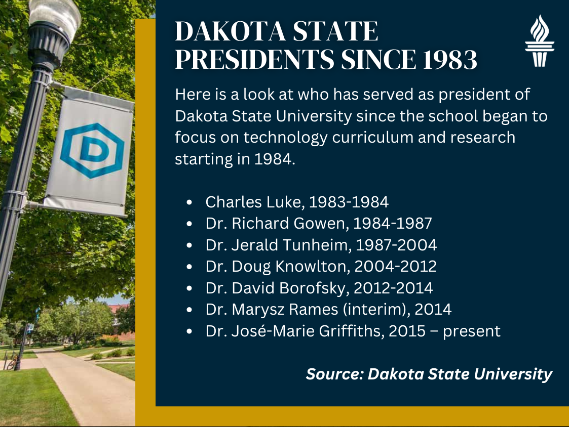 DSU business and information systems professor Lynette Molstad Gorder was teaching at the university 40 years ago when the shift to a high-tech campus began. In a video recorded by DSU, Molstad Gorder recalled that there was initial hesitancy on campus about the mission change.