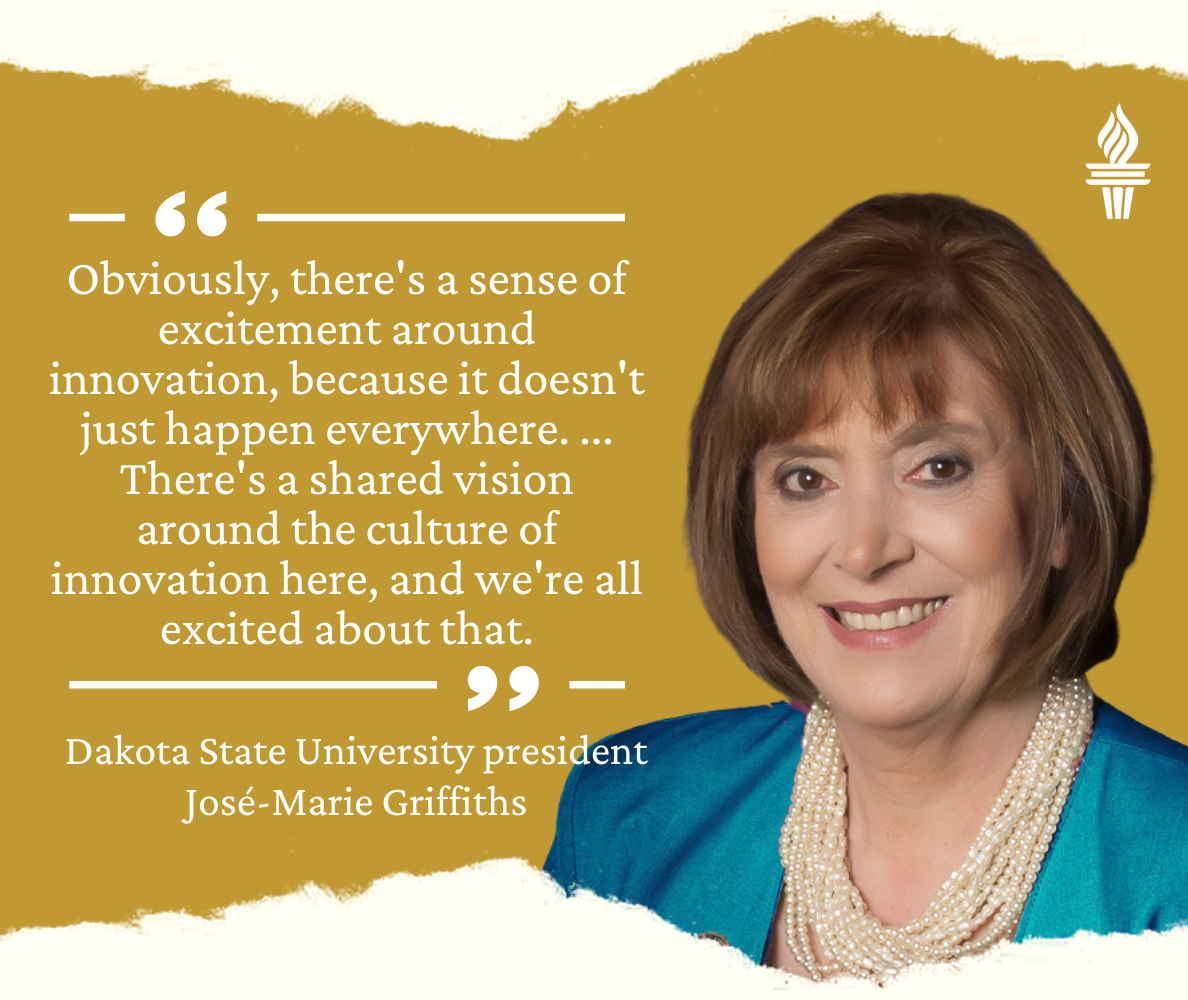 "Obviously, there's a sense of excitement around innovation because it doesn't just happen everywhere," said Griffiths, 72, who told News Watch her job as DSU president will be her last before retirement. "There's a shared vision around the culture of innovation here, and we're all excited about that. It means you create an environment where people can try things out, and if they fail, it's not the end of the world."