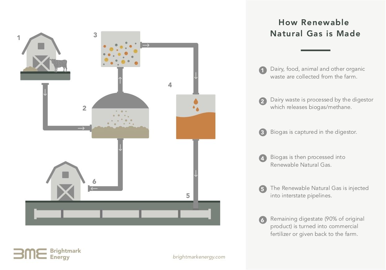 Once filtered, the manure-derived methane is essentially the same gas that is already used as fuel at homes and businesses across South Dakota. Brightmark’s plan is to pump the gas collected from the dairies directly into an existing interstate natural gas pipeline system located near the farms.