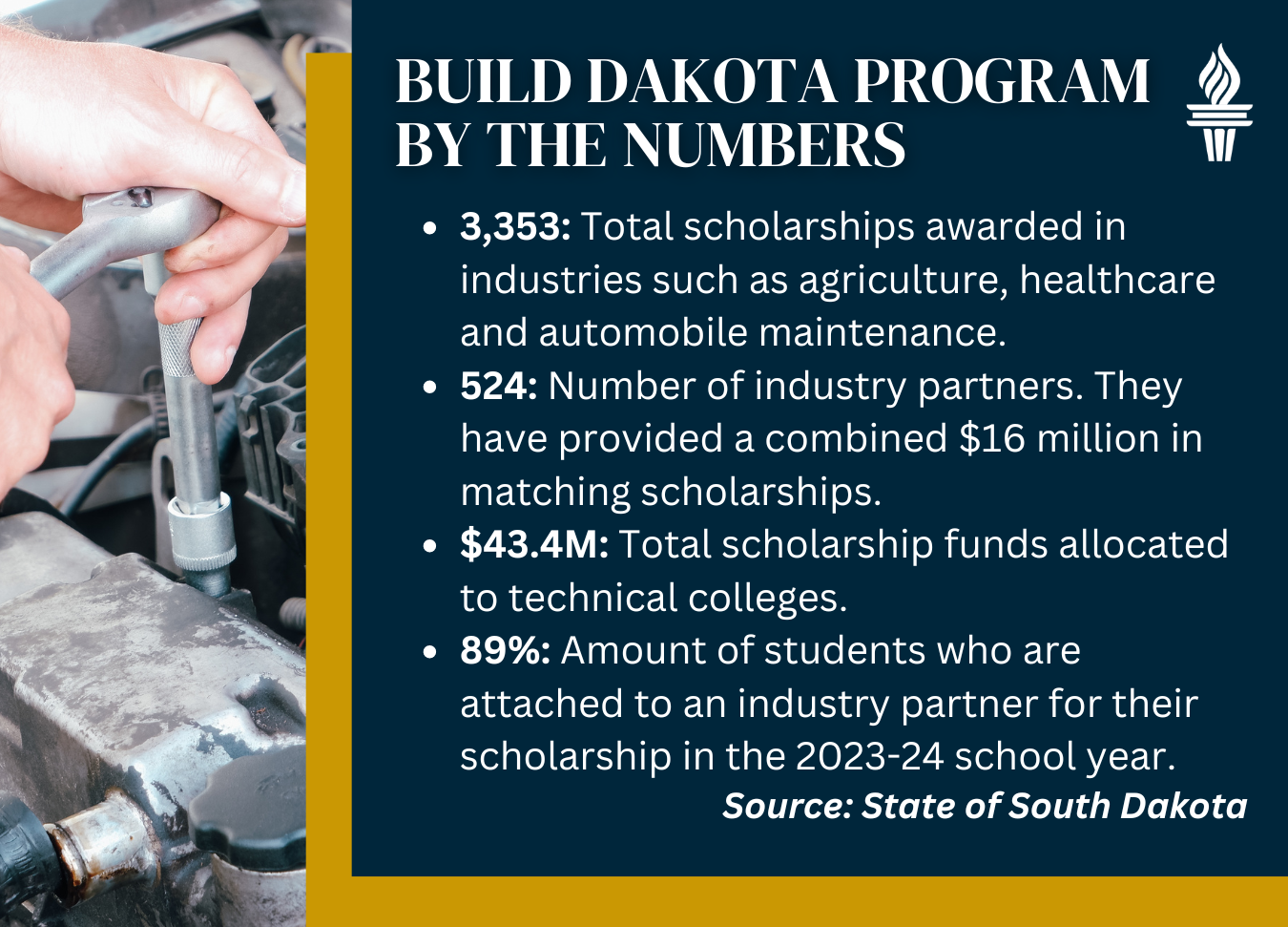 "There are many other scholarships available," he said. "But for Build Dakota, if we're gonna give them a free education, we really want the cream of the crop, and we want the ones that are going to stay here and be valuable employees."
